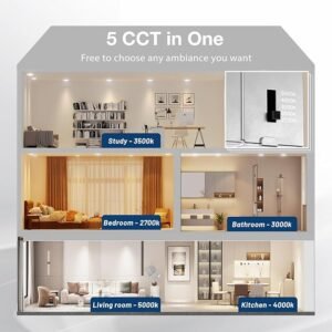 - 5 CCT: 2700K, 3000K, 3500K, 4000K, 5000K, 5 color temperature selectable, no need to worry about what color temperature to buy, eliminates the hassle of returning or exchange products due to inappropriate color temperature.