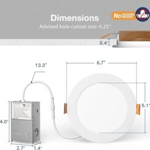 - High Brightness: The 6 inch led recessed light use the world\’s leading LED chips with higher lumens and lower power. 1050LM consumes 12 Watts, which equals to 100W halogen lamp, saving you up to 90% in energy costs.