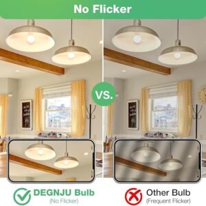 - 【No Flicker & Eye Protection】DEGNJU A19 LED light bulbs have passed rigorous testing standards, which are free of harmful substances such as mercury and lead, and will not produce UV and IR radiation. No flicker, strobe or glare, our 60 Watt Equivalent light bulbs emit a stable light to better protect your families\’ eyes.