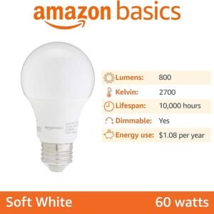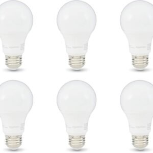 Amazon Basics A19 LED Light Bulbs, 60 Watt Equivalent, Energy Efficient 9W, E26 Standard Base, Soft White 2700K, Dimmable, 10,000 Hour Lifetime , 6-Pack