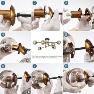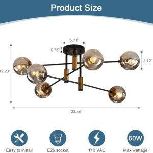 - DIMMABLE & BULB SUPPORT: This living room ceiling light includes dimmable features, you use it need to buy dimmer switch and dimmable light bulbs; you can create different ambiance with different level of brightness; for the bulbs requirement, use 6 x E26 bulb base(bulb max watt is 60w); compatible with a variety of LED, edison, halogen,cfl or incandescent bulbs. (not including bulbs.Please be sure to wear gloves for protection when installing the lampshade to avoid scratches and fingerprints on the lampshade).
