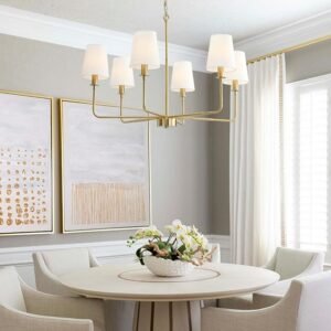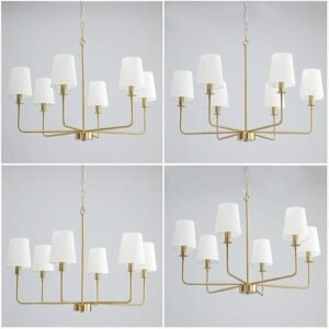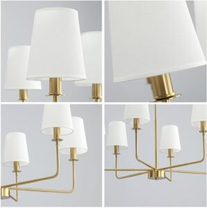- 【Durable & Heat-Resistant Materials】Sturdy brushed gold metal frame with anti-rust coating; linen shades provide soft, diffused lighting. E12 candelabra base compatible with LED bulbs, energy-efficient and long-lasting(Bulbs Not Included)