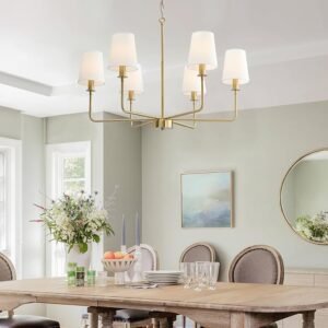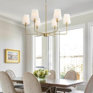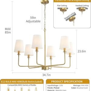 - 【Authentic Farmhouse Aesthetic】This brushed gold chandelier features 6 brushed gold arms with natural linen fabric shades, combining rustic charm and industrial elegance. Perfect for creating a cozy, vintage-inspired atmosphere in farmhouse, cottage, or modern rustic interiors
