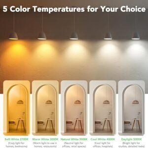 - 5 Color Temperatures for Every Mood:5 color temperatures 2700K/3000K/3500K/4000K/5000K are availbale. Choose from 2700K to 5000K to suit any atmosphere—warm and cozy for relaxation or cool and bright for focused tasks. Adjust your lighting to perfectly match your environment and preferences.