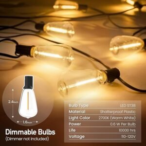- String Lights Outdoor: These outdoor lights with shatterproof LED bulbs are dimmable with dimmers to match different moods or occasions. Compatible with most dimmers on the market (dimmer is NOT included). Type A US plug